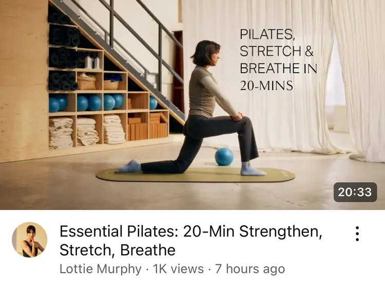 This routine is a lovely 20-minute Pilates routine designed to tick all the boxes you need ticking. Pilates - tick, stretching- tick, breathing- tick.