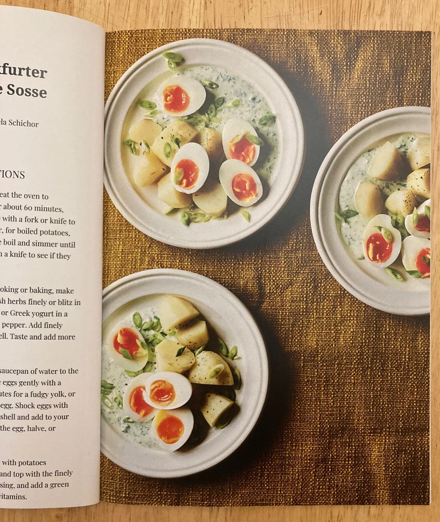 One of my favourite German dishes includes eggs and potatoes – two of my favourite things! It’s called Frankfurter Grüne Soße (green sauce). The traditional Hessian version has a distinctive mix of herbs in it, and it often gets blitzed in a blender so the sauce actually turns slightly green (hence the name). It’s traditionally eaten around Easter, but many people and restaurants would have it all year around.