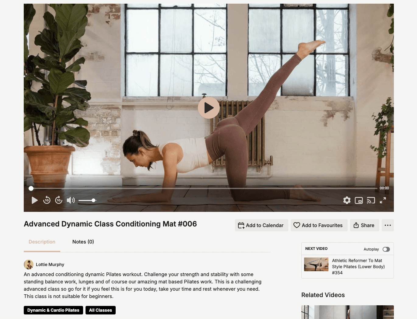 I currently have many favorited videos on the LMP platform. One video I am drawn to is the Advanced Dynamic Conditioning Matt #006. I take that class at least once a week adding weights and a loop band for some extra spice.