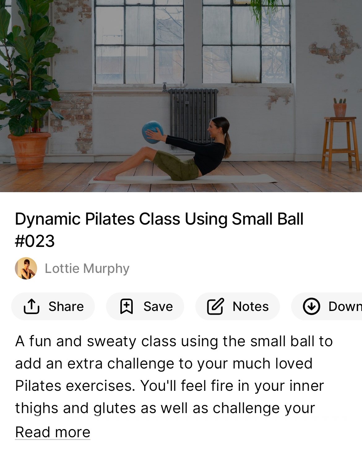 My favourite classes always involve the pilates ball because of the extra challenge! One of my favourites is no doubt the Dynamic Pilates Class using small ball #023.