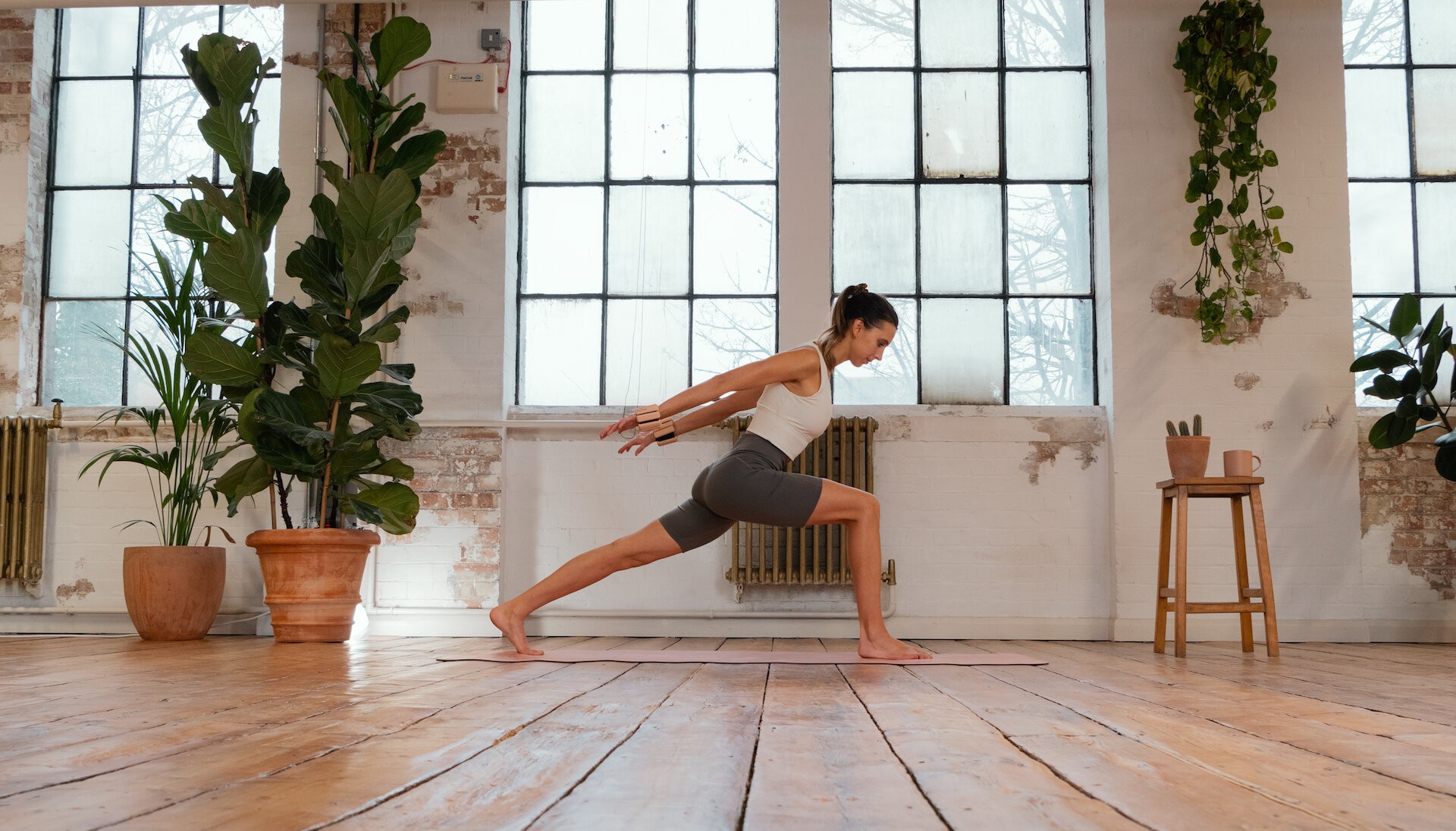 Ankle and wrist weights work wonders to create that extra load to our limbs which will build strength and encourage awareness. Of course you can use any ankle/wrist weights or even jars of food in the hands but what I love about these bangles is that you can move as if they aren’t there and they look quite chic too. I use 1-2lbs weights. You don’t need them heavy for the type of work we do in my classes. Try this full body Pilates class using the weighted bangles here.